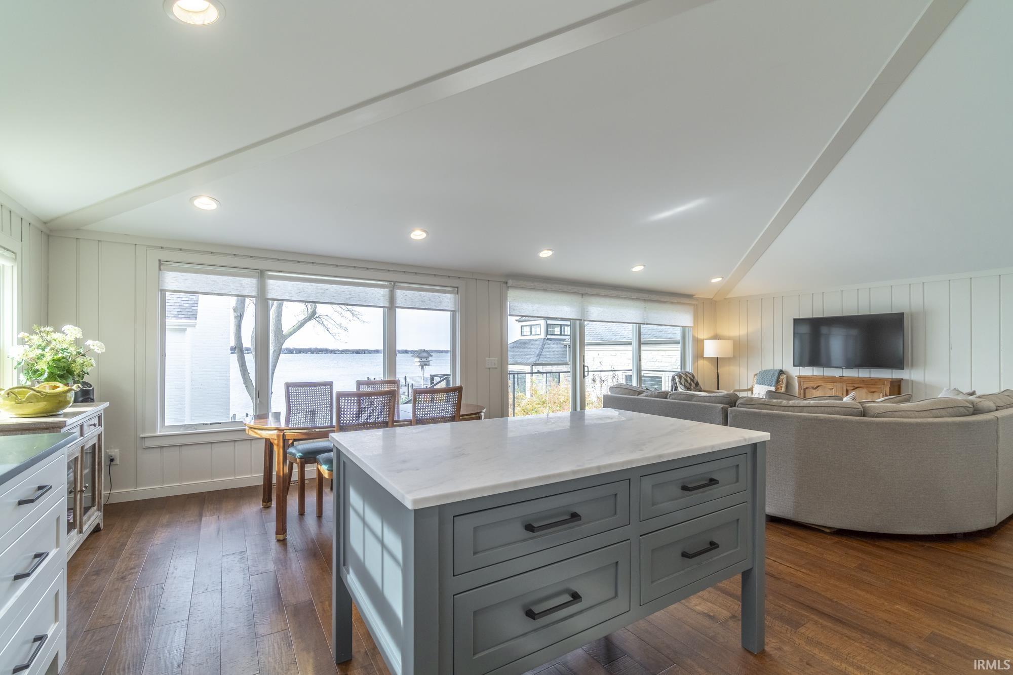 Located on the Northshore of Wawasee, Indiana's largest all-sport natural lake, this stunning 5-bedroom, 4 1/2-bath luxury estate combines modern elegance with exceptional craftsmanship. Known for its breathtaking sunsets, this prime location offers the perfect setting for relaxation and lakeside living. Meticulously gutted and renovated by Milestone Construction in 2022-2023, every custom detail has been thoughtfully designed to deliver the ultimate luxury lake house experience. The expansive main-floor primary suite, currently being used as a den, boasts a spa-like ensuite with breathtaking lake views. While the gourmet kitchen features top-of-the-line appliances, including a Wolf range and Sub-Zero refrigerator. State-of-the-art mechanical systems, including HVAC, tankless water heaters, and all-new electrical and plumbing, ensure modern comfort throughout. Step outside to Pier #76, offering 100 feet of pristine frontage, and enjoy unparalleled access to endless water activities. The property also features a brand-new seawall, a maintenance-free pier with three spacious bays, and a charming lakeside storage shed for all your outdoor essentials. A detached guest house provides a private retreat for family or visitors, fully renovated to the highest standards, with two bedrooms, two full baths, and a garage with a custom structural beam for open, unobstructed space. For added convenience, the main house includes an attached two-car garage, while the guesthouse offers a second two-car garage--ensuring plenty of parking, a rare luxury at the lake. The main floor laundry even includes a spa-inspired dog wash station for the ultimate pet care experience. This exceptional estate is a rare find, offering luxury, privacy, and unmatched lakefront living in one of Indiana's most coveted locations.